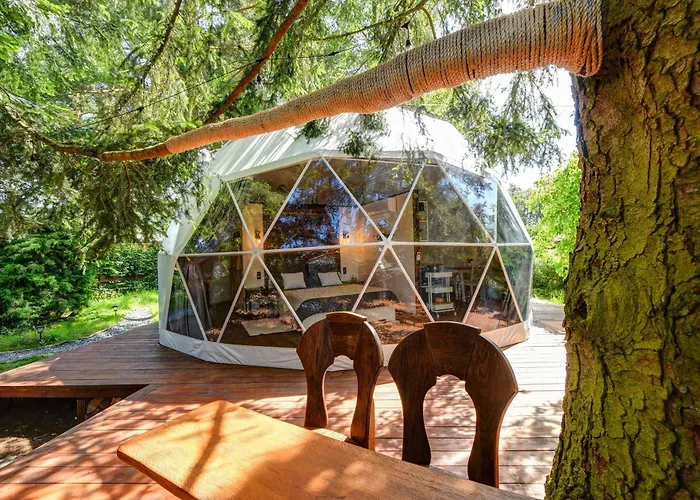 The 1-bedroom Tiche Misto Glamping Hotel is located a 10-minute ride from Slapy Reservoir and provides guests with a Jacuzzi and a sauna for a more relaxing stay. Featuring a terrace, the beachfront luxury tent is situated 3.6 km from Rope Park Slapy.